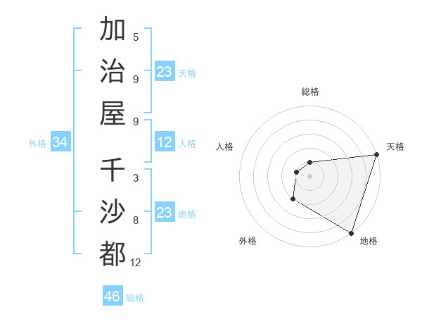 加治屋 千沙都さんの天格は23画の5点