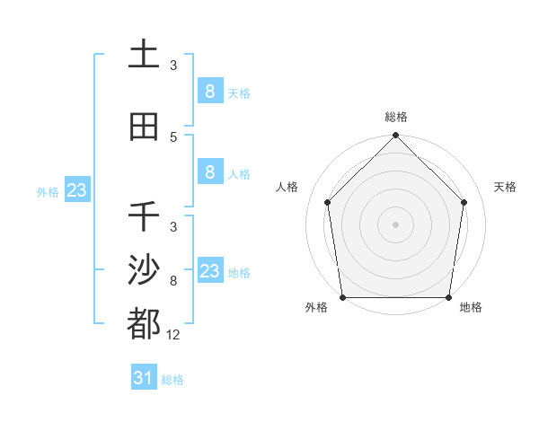 土田 千沙都さんを姓名の画数から五運を鑑定