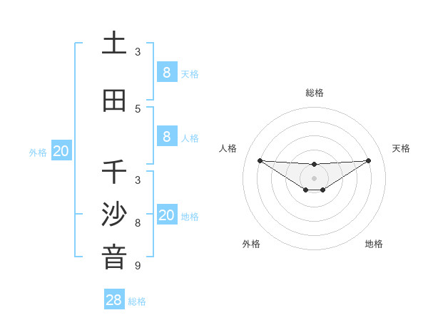 土田 千沙音さんを姓名の画数から五運を鑑定
