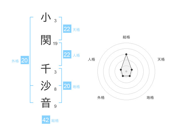 小関 千沙音さんの総格は42画の3点!