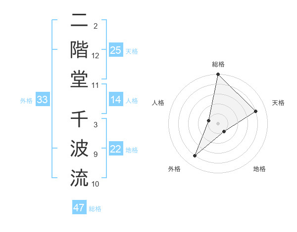 二階堂 千波流さんを姓名の画数から五運を鑑定
