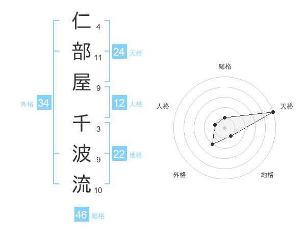 仁部屋 千波流さんを姓名の画数から五運を鑑定