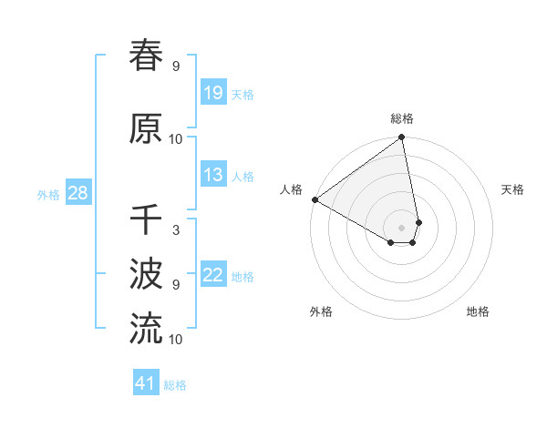 春原 千波流さんの総格は41画の5点!