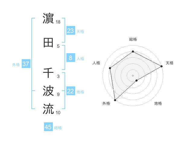濵田 千波流さんを姓名の画数から五運を鑑定