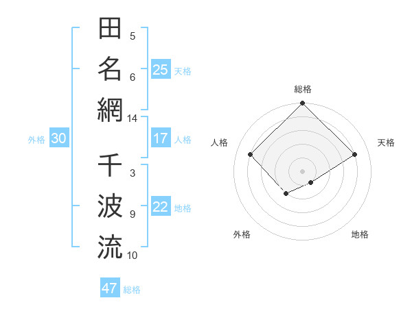 田名網 千波流さんの総格は47画の5点!