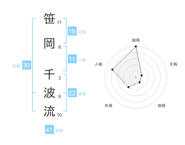 笹岡 千波流さんの地格は22画の1点!