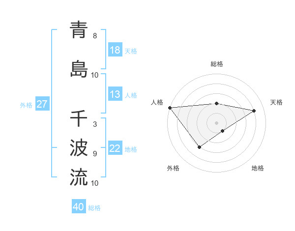 青島 千波流さんの総格は40画の2点!