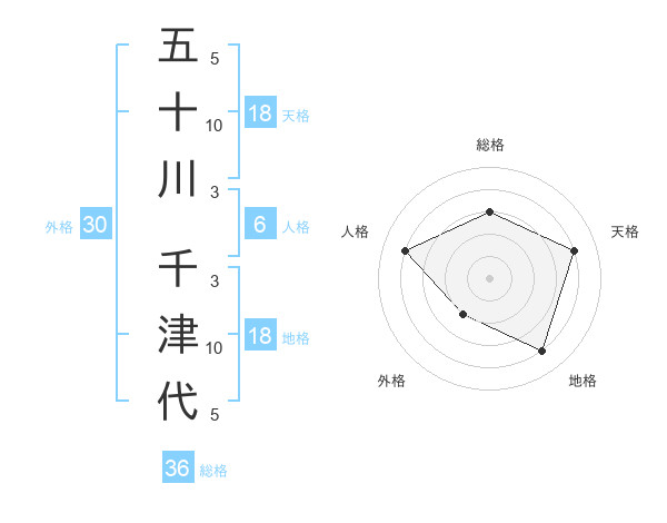 五十川 千津代さんの天格は18画の4点!