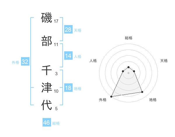 磯部 千津代さんを姓名の画数から五運を鑑定