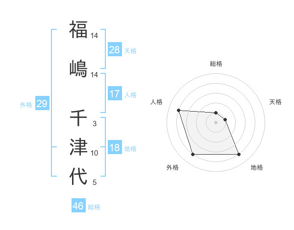 福嶋 千津代さんを姓名の画数から五運を鑑定