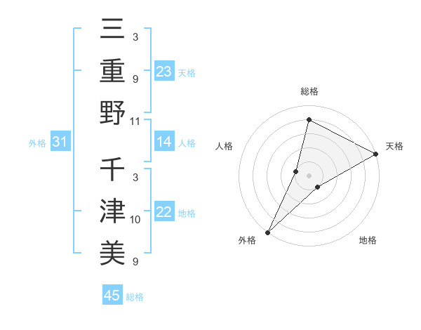 三重野 千津美さんを姓名の画数から五運を鑑定
