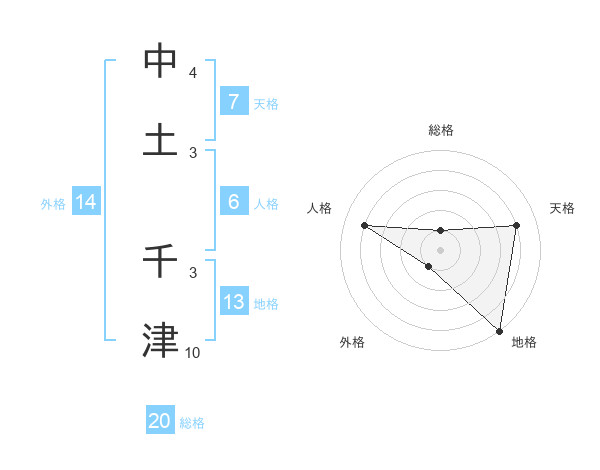 中土 千津さんの総格は20画の1点!