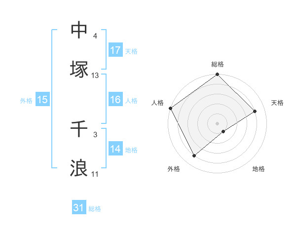 中塚 千浪さんの天格は17画の4点!