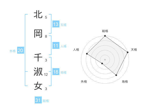 北岡 千淑女さんの天格は13画の5点!