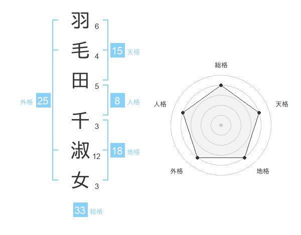 羽毛田 千淑女さんの総格は33画の4点!