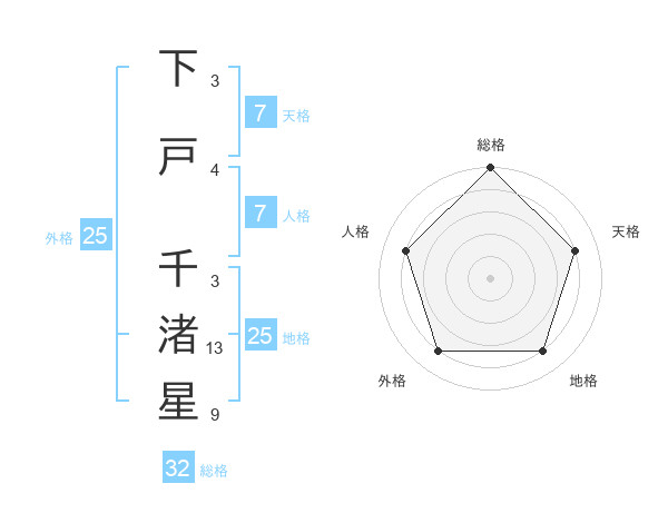 下戸 千渚星さんの総格は32画の5点!