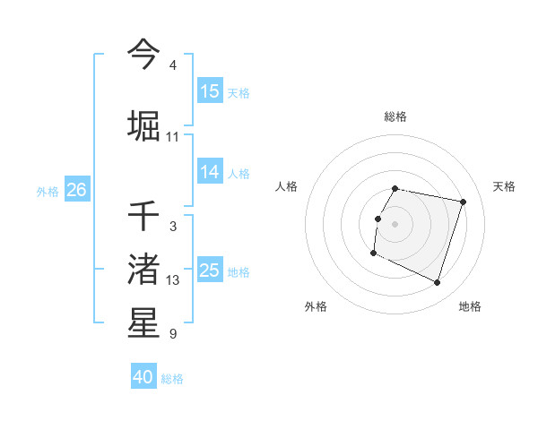 今堀 千渚星さんを姓名の画数から五運を鑑定