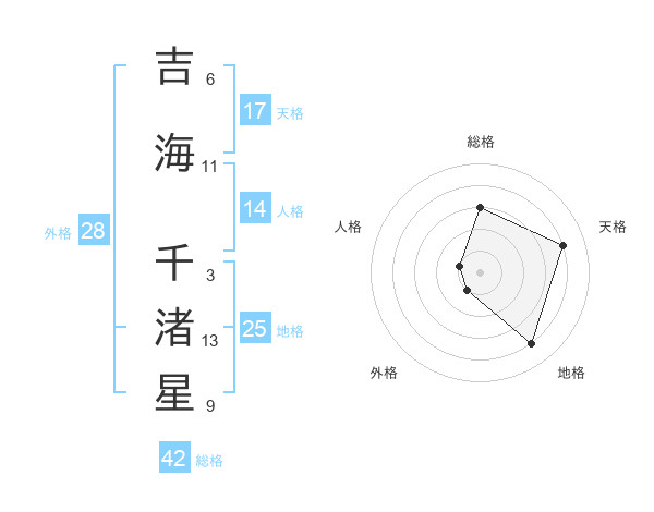 吉海 千渚星さんの総格は42画の3点!