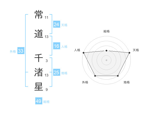常道 千渚星さんを姓名の画数から五運を鑑定