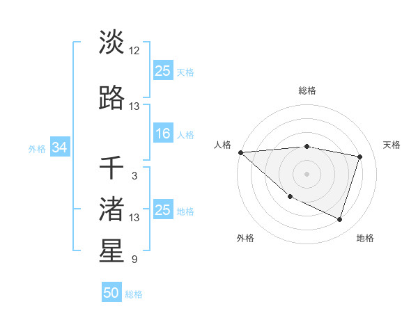 淡路 千渚星さんを姓名の画数から五運を鑑定