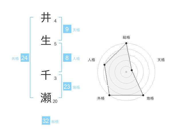 井生 千瀬さんの総格は32画の5点!