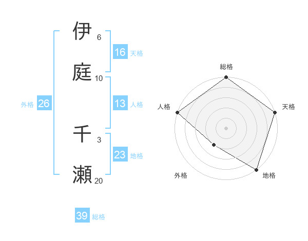 伊庭 千瀬さんの天格は16画の5点!