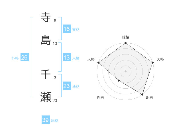 寺島 千瀬さんを姓名の画数から五運を鑑定