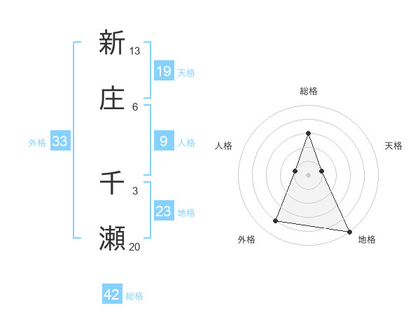 新庄 千瀬さんの外格は33画の4点!