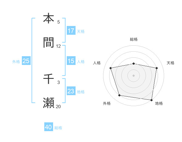 本間 千瀬さんの地格は23画の5点!