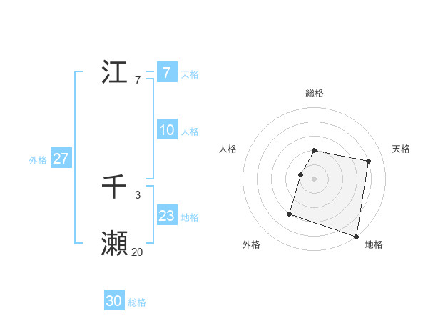 江 千瀬さんの総格は30画の2点!