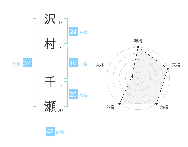 沢村 千瀬さんを姓名の画数から五運を鑑定