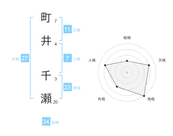 町井 千瀬さんを姓名の画数から五運を鑑定