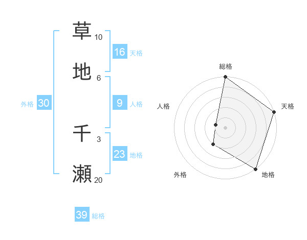 草地 千瀬さんを姓名の画数から五運を鑑定