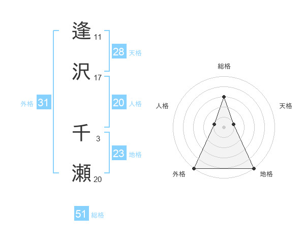 逢沢 千瀬さんの外格は31画の5点!