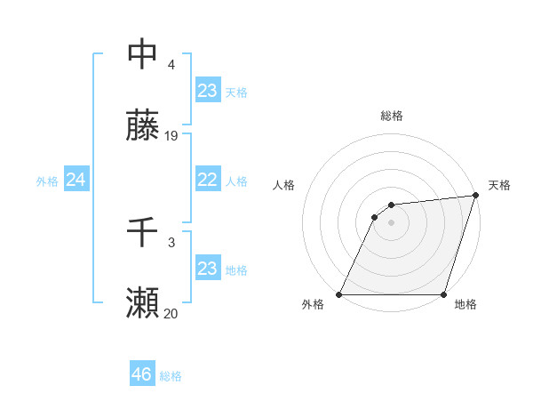 中藤 千瀬さんを姓名の画数から五運を鑑定
