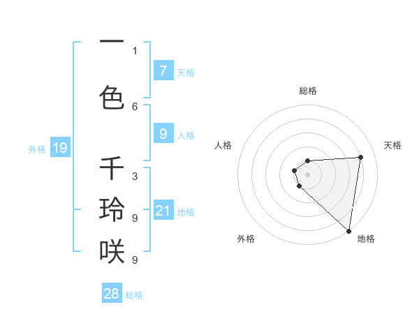 一色 千玲咲さんの外格は19画の1点!
