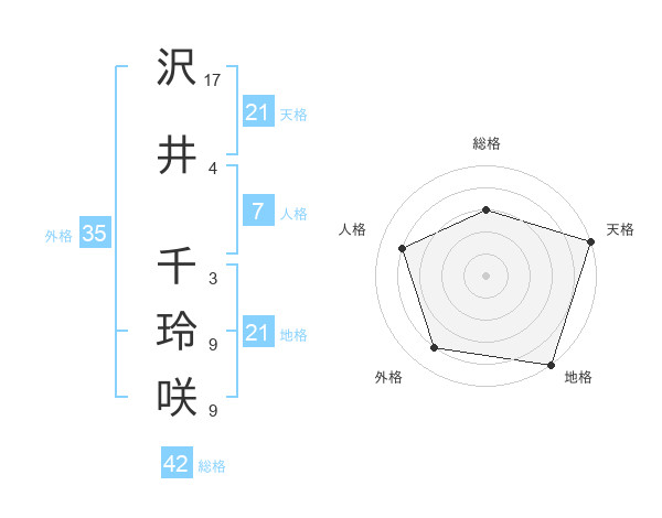 沢井 千玲咲さんを姓名の画数から五運を鑑定