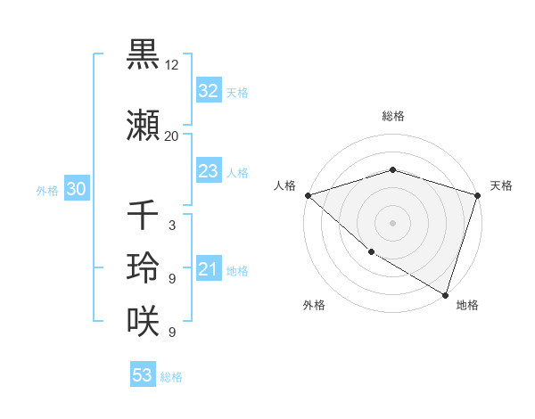 黒瀬 千玲咲さんを姓名の画数から五運を鑑定