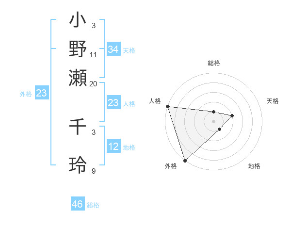 小野瀬 千玲さんの総格は46画の1点!