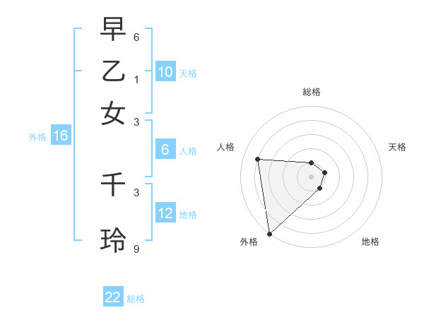 早乙女 千玲さんの総格は22画の1点