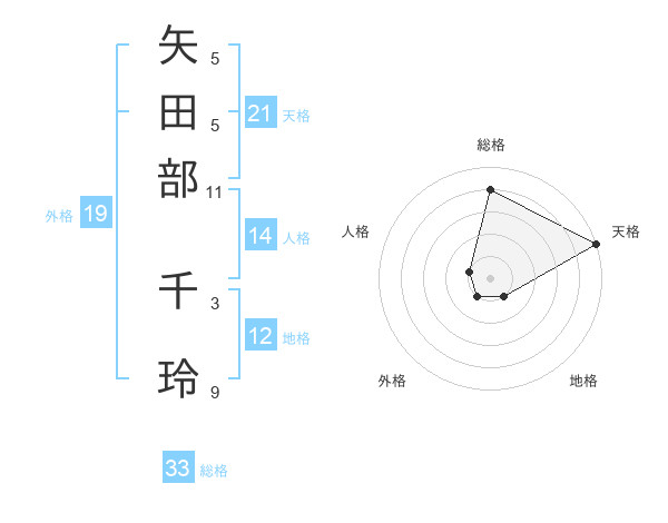 矢田部 千玲さんを姓名の画数から五運を鑑定