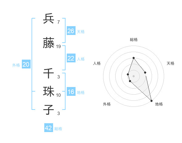 兵藤 千珠子さんの総格は42画の3点!