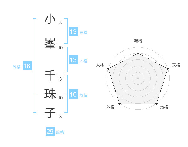 小峯 千珠子さんを姓名の画数から五運を鑑定