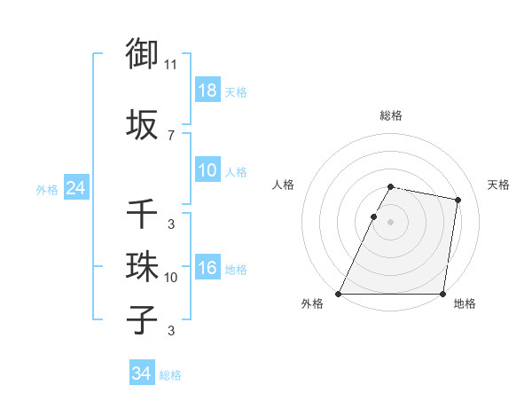 御坂 千珠子さんを姓名の画数から五運を鑑定