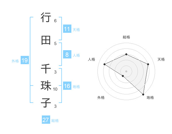 行田 千珠子さんを姓名の画数から五運を鑑定