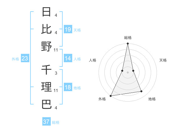 日比野 千理巴さんを姓名の画数から五運を鑑定