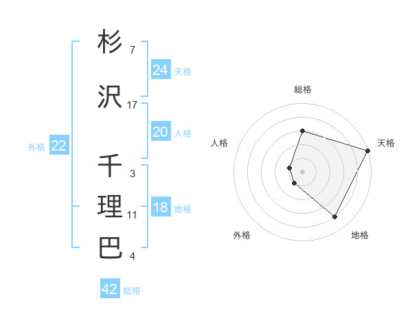 杉沢 千理巴さんの天格は24画の5点!