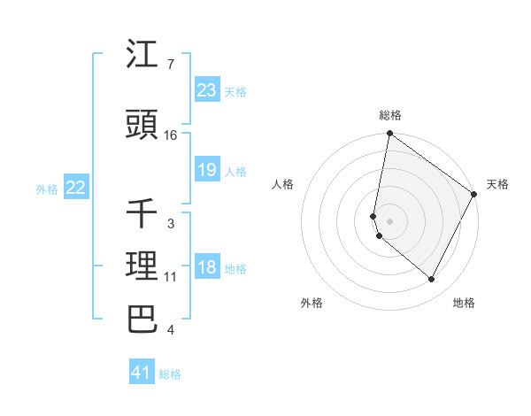 江頭 千理巴さんを姓名の画数から五運を鑑定