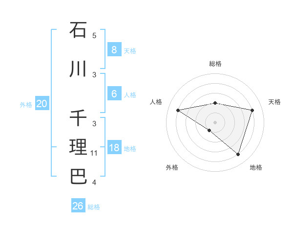石川 千理巴さんを姓名の画数から五運を鑑定