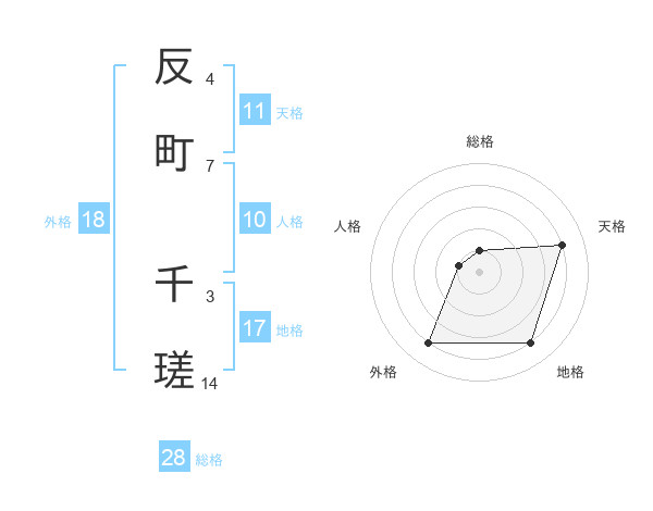 反町 千瑳さんの総格は28画の1点!